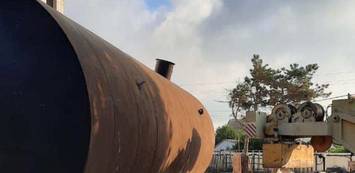Особенности монтажа данного объекта в том, что, в связи с большим негабаритом, большими геометрическими размерами - заготовка была произведена на заводе, сборка и монтаж резервуара была произведена в полевых условиях на стройучастке.